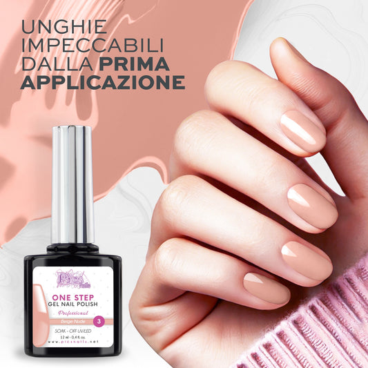 Smalto Semipermanente One Step Beige Nude 3 - 12 ml | Semipermanente 3in1 UV/LED Ultra Lucido