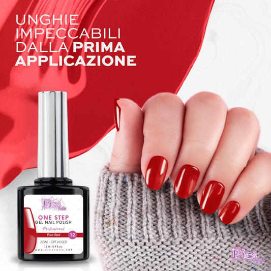 Smalto Semipermanente One Step Pure Red 12 - 12 ml | Semipermanente 3in1 UV/LED Ultra Lucido