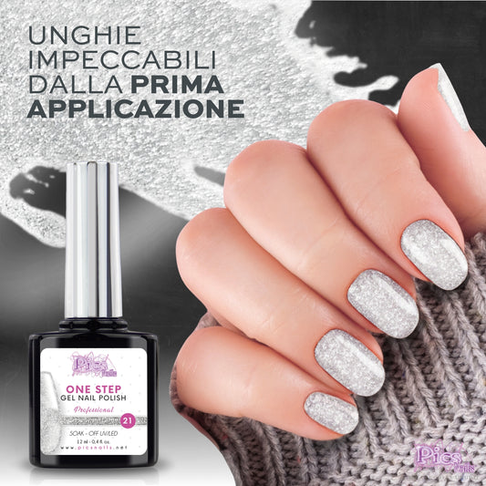Smalto Semipermanente One Snow White Glitter 21 - 12 ml | Semipermanente 3in1 UV/LED Ultra Lucido