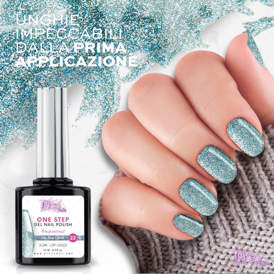 Smalto Semipermanente One Blu Sky Glitter 22 - 12 ml | Semipermanente 3in1 UV/LED Ultra Lucido