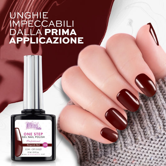 Smalto Semipermanente One Step Burgundy Red 15 - 12 ml | Semipermanente 3in1 UV/LED Ultra Lucido