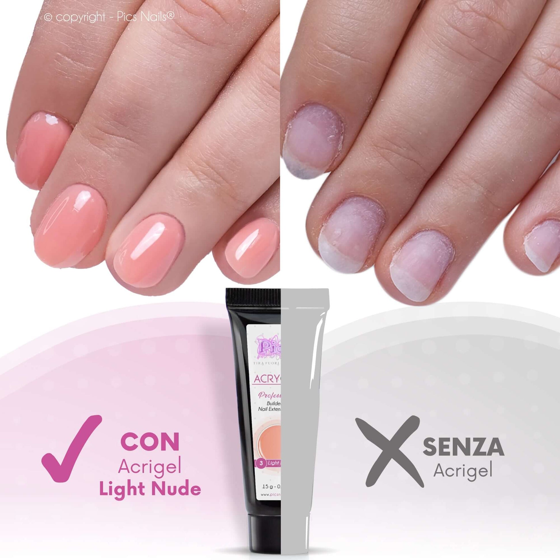Acrygel Light Nude è di colore Nude Tenue dall'altissima viscosità, conosciuto come Acrigel, Acrygel o Acrylic Gel for Nails