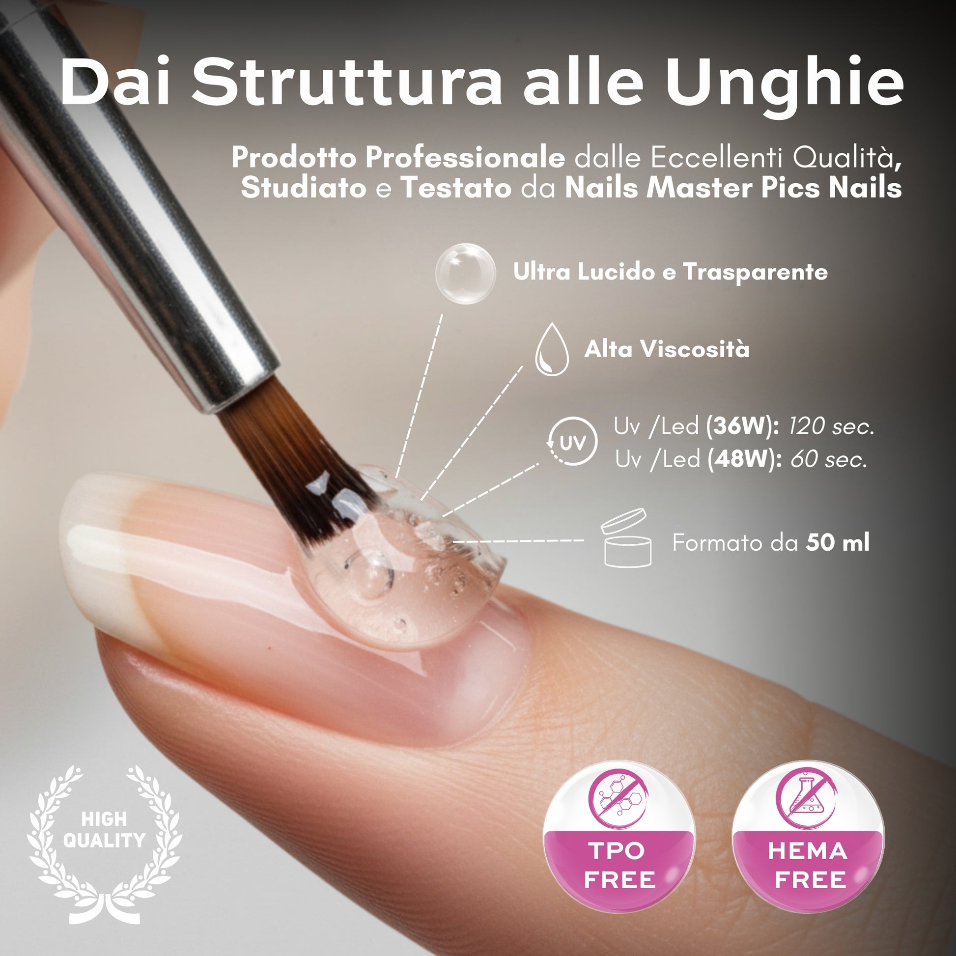 Nuovissimo Prodotto della Gamma Pics Nails Creato per seguire le nuove tendenze onicotecniche nella lavorazione delle unghie con l'utilizzo delle Lampade a Led! Questo Gel è Foto Indurente e trasparente, Auto Livellante dalla Alta Viscosità, Facile da Applicare, Modellare e Limare. E' un Gel Costruttore Molto Resistente ed Altamente Flessibile ed è possibile utilizzarlo con tutti i gel Color, Glitter e Decorazioni ungueali direttamente come base Gel.