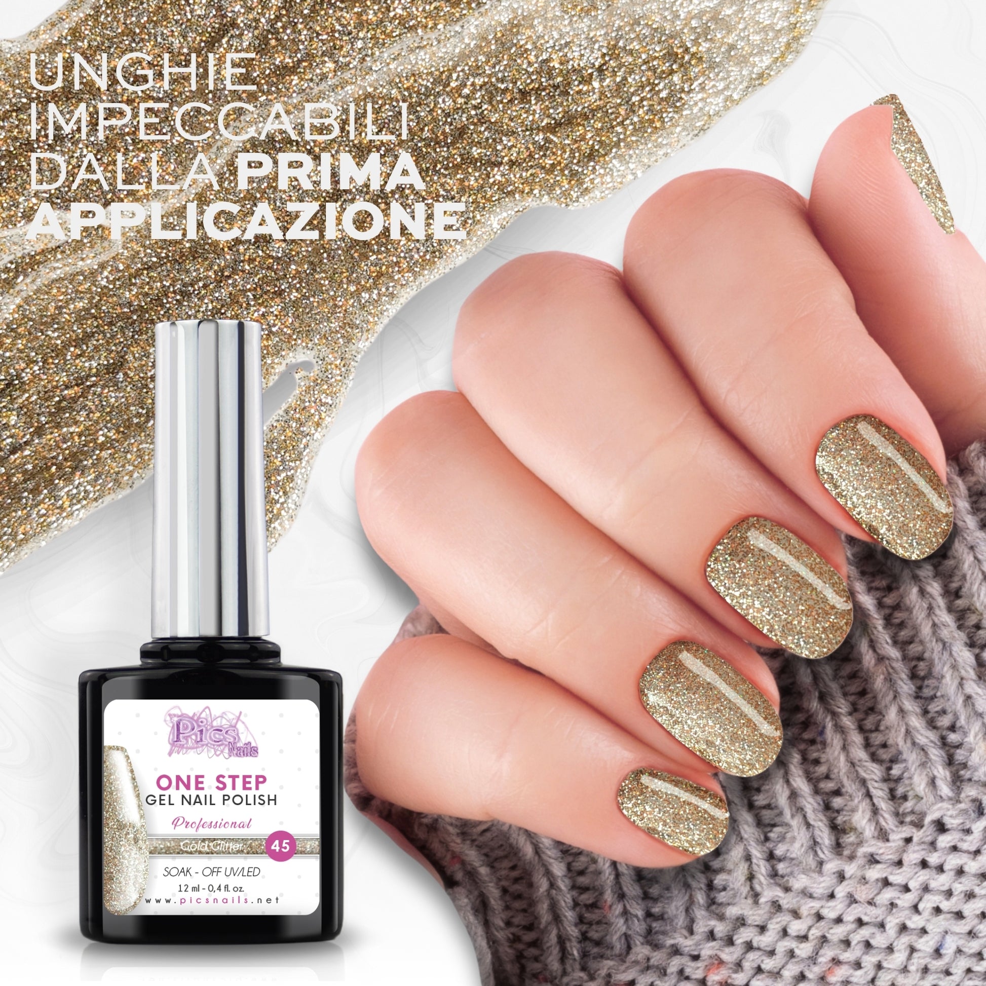 Smalto Semipermanente One Gold Glitter 45 - 12 ml | Semipermanente 3in1 UV/LED Ultra Lucido