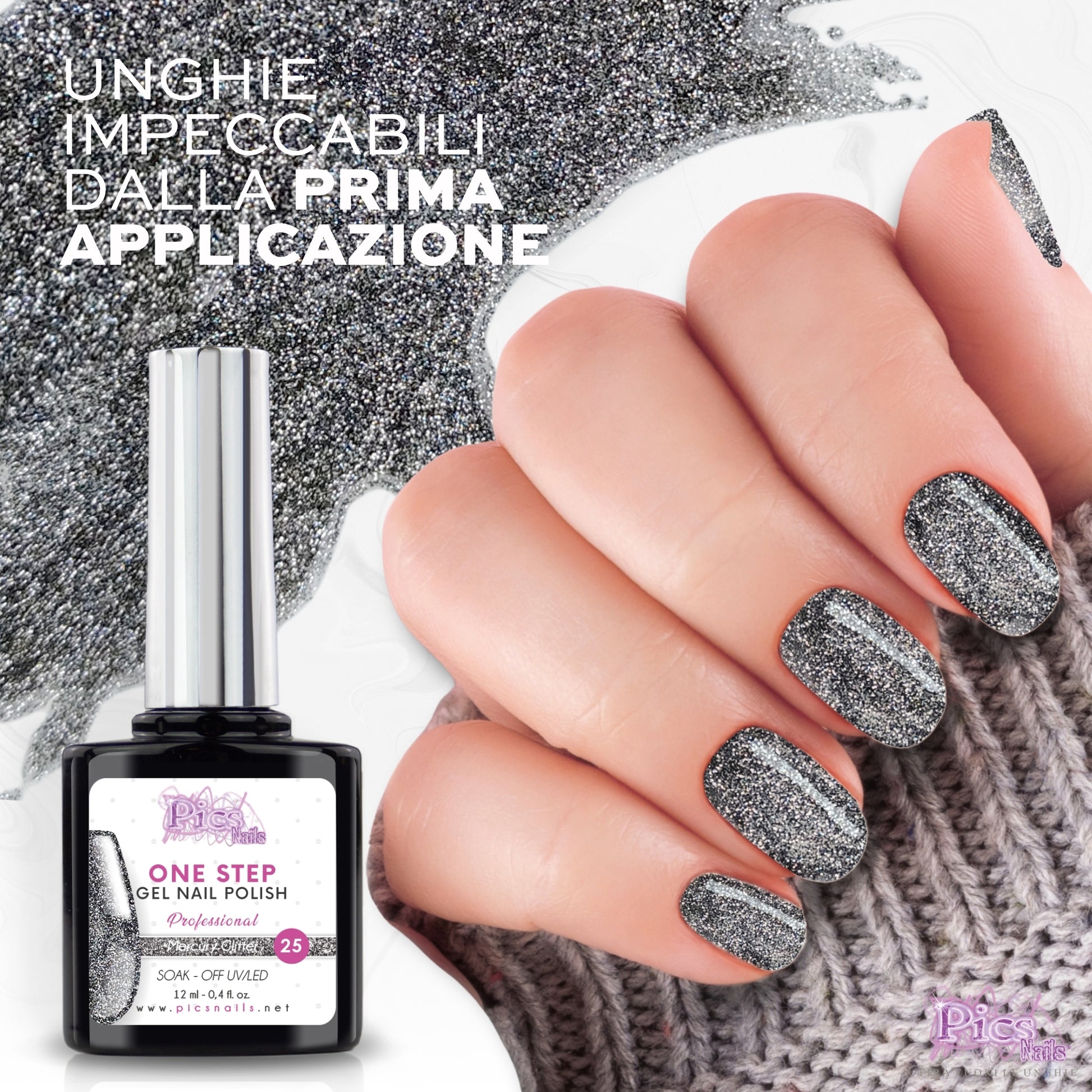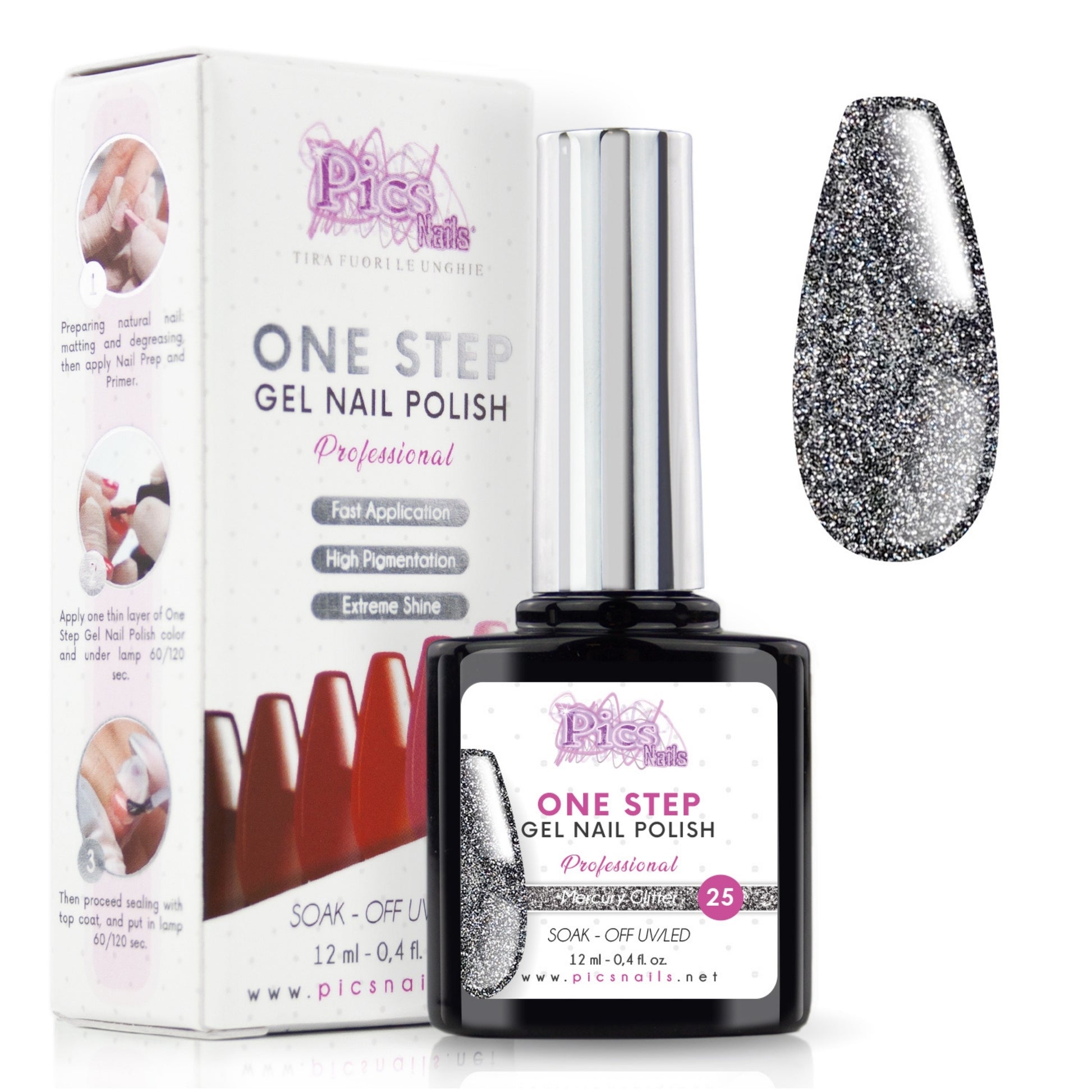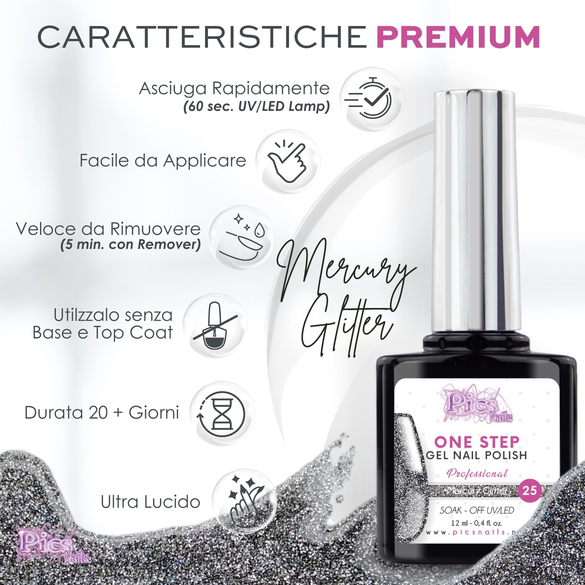 Smalto Semipermanente One Step Mercury Glitter 25 - 12 ml | Semipermanente 3in1 UV/LED Ultra Lucido