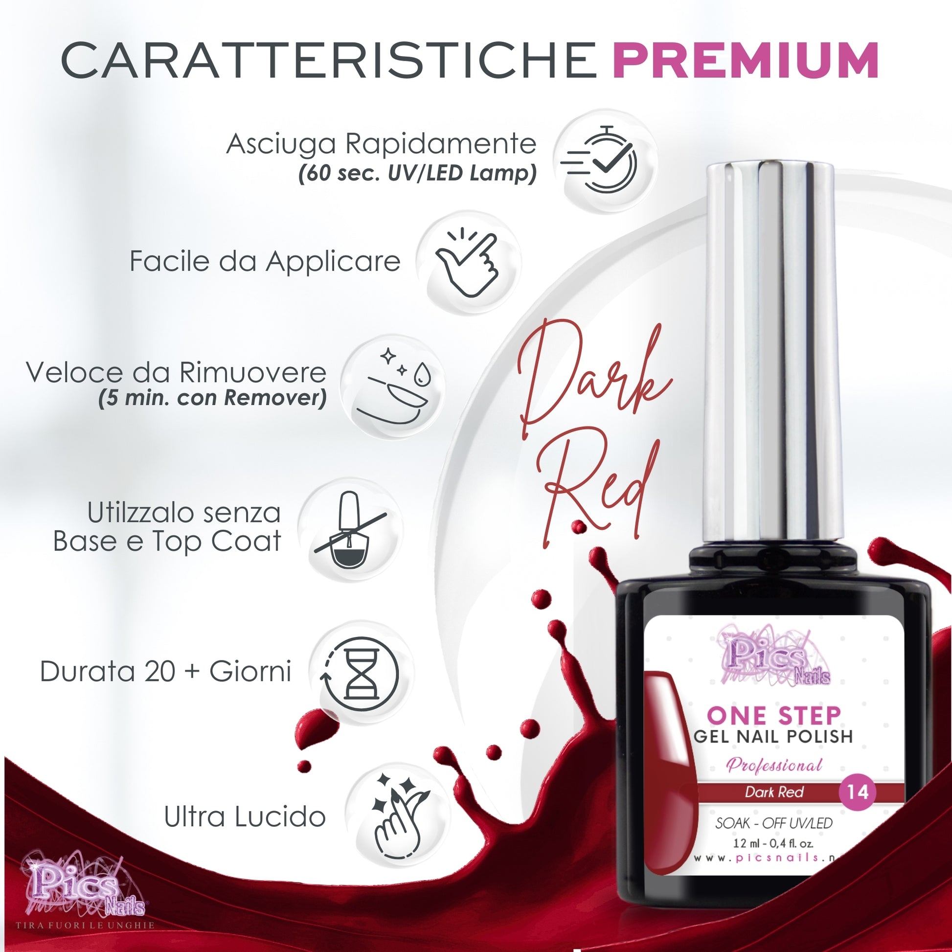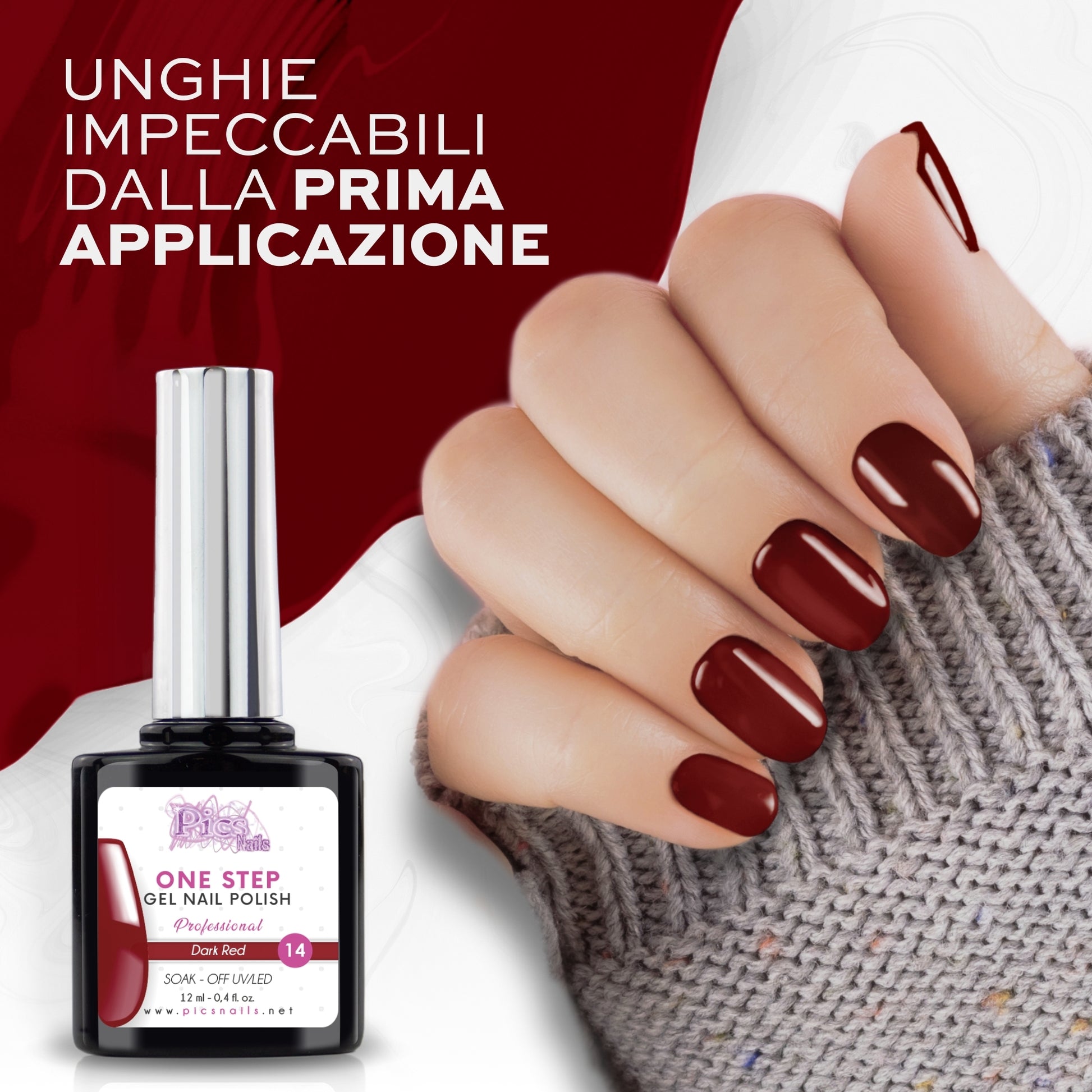 Smalto Semipermanente One Step Dark Red Clear 14 - 12 ml | Semipermanente 3in1 UV/LED Ultra Lucido