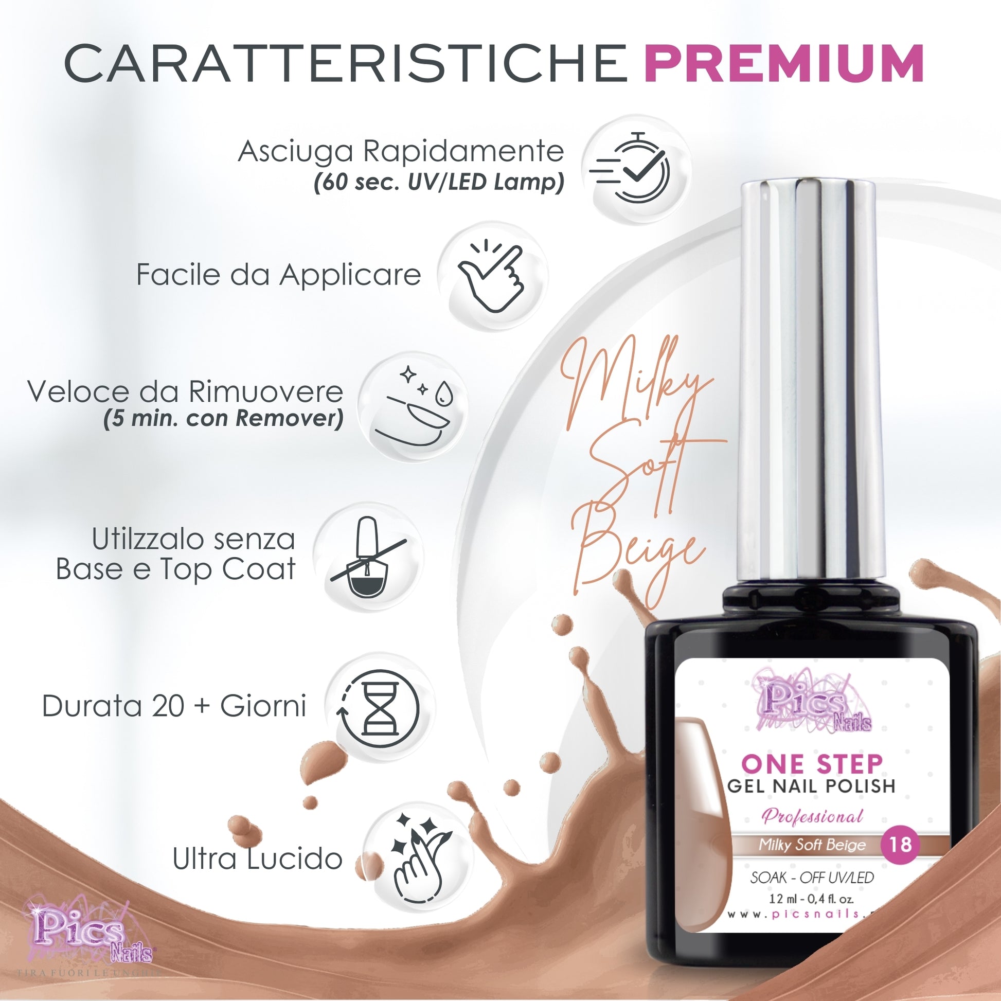 Smalto Semipermanente One Step Milky Soft Beige 18 - 12 ml | Semipermanente 3in1 UV/LED Ultra Lucido