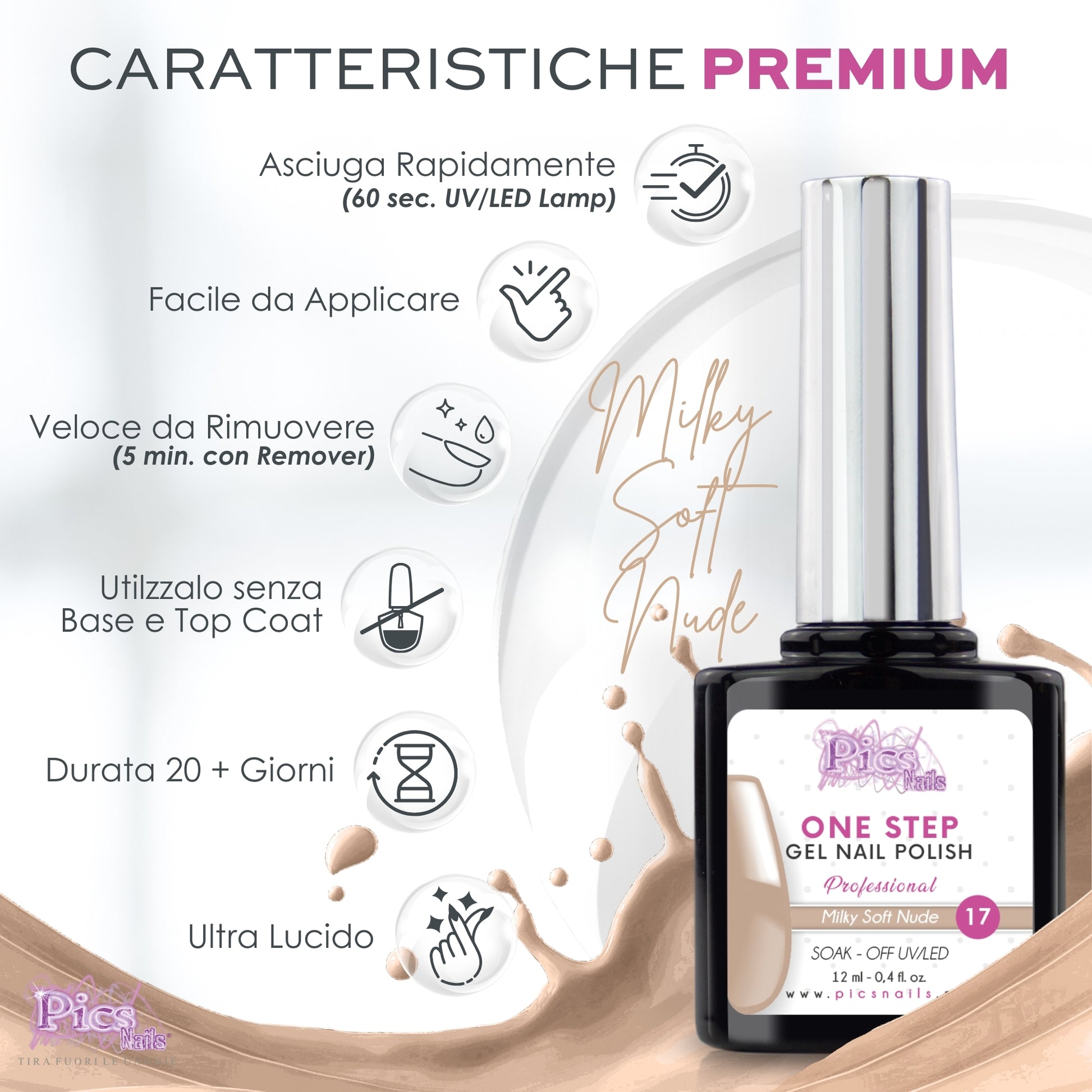 Smalto Semipermanente One Step Milky Soft Nude 17 - 12 ml | Semipermanente 3in1 UV/LED Ultra Lucido