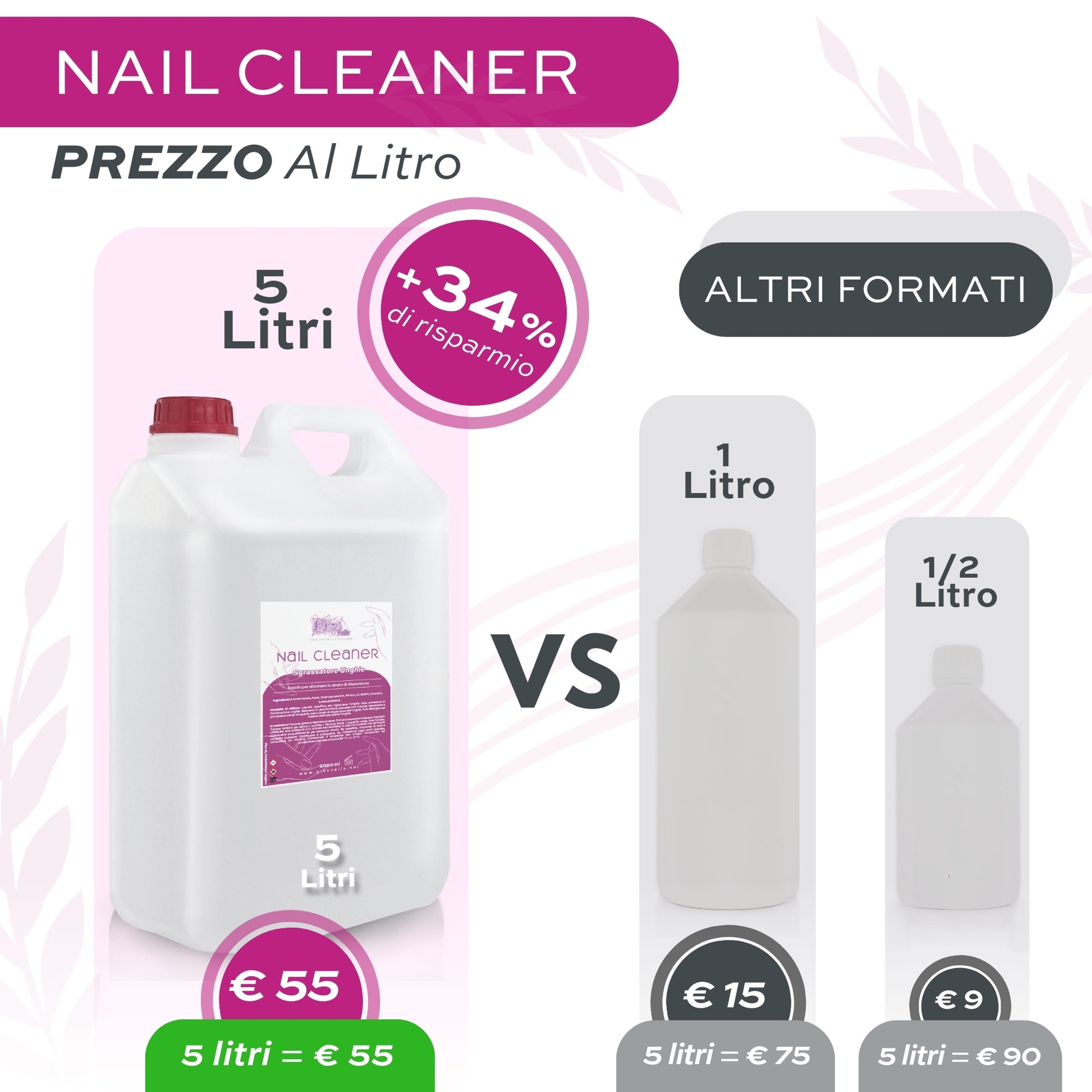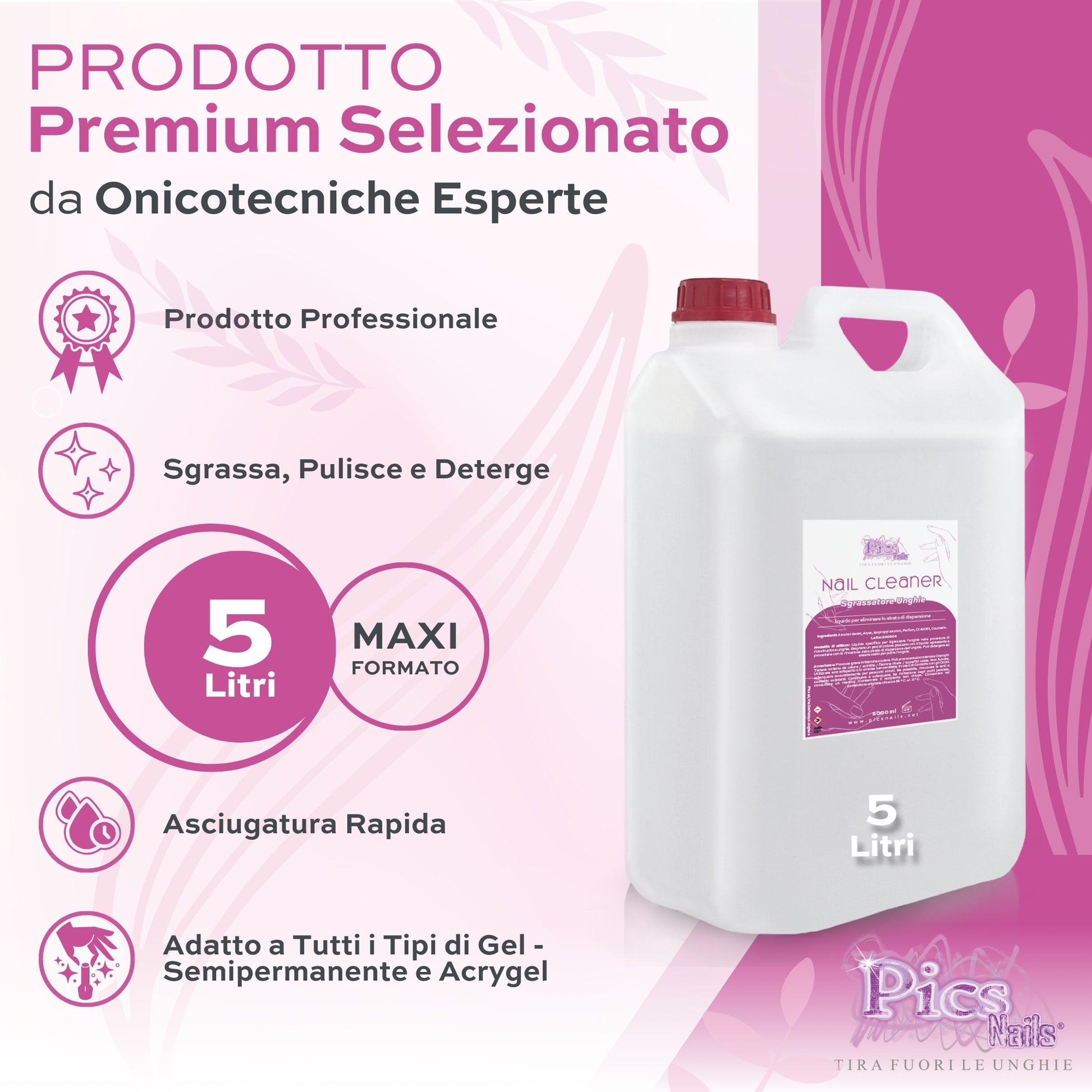 💧 Cleaner Sgrassatore Unghie MAXI da 5 Litri: Il nostro sgrassatore unghie gel è disponibile in Formato maxi da 5 litri, perfetto per saloni di bellezza o per chi desidera avere sempre a disposizione un prodotto professionale e abbondante. Un vero affare che garantisce pulizia e cura a lungo termine per le tue unghie.