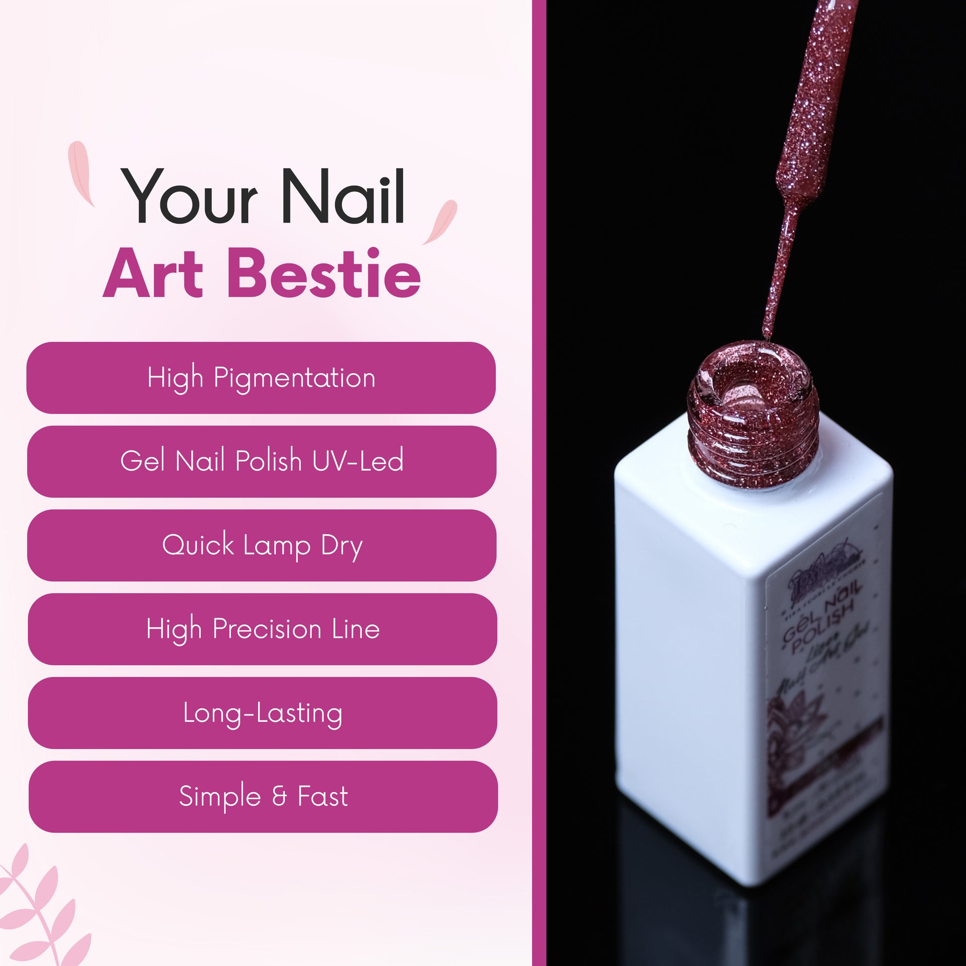 Smalto Nail Art Semipermanente Liner Gel per Unghie UV/LED 10 ml - Rosa Glitter 6