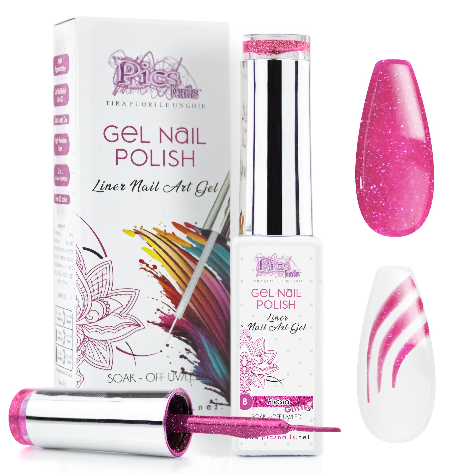 Smalto Nail Art Semipermanente Liner Gel per Unghie UV/LED 10 ml - Fucsia Glitter 8