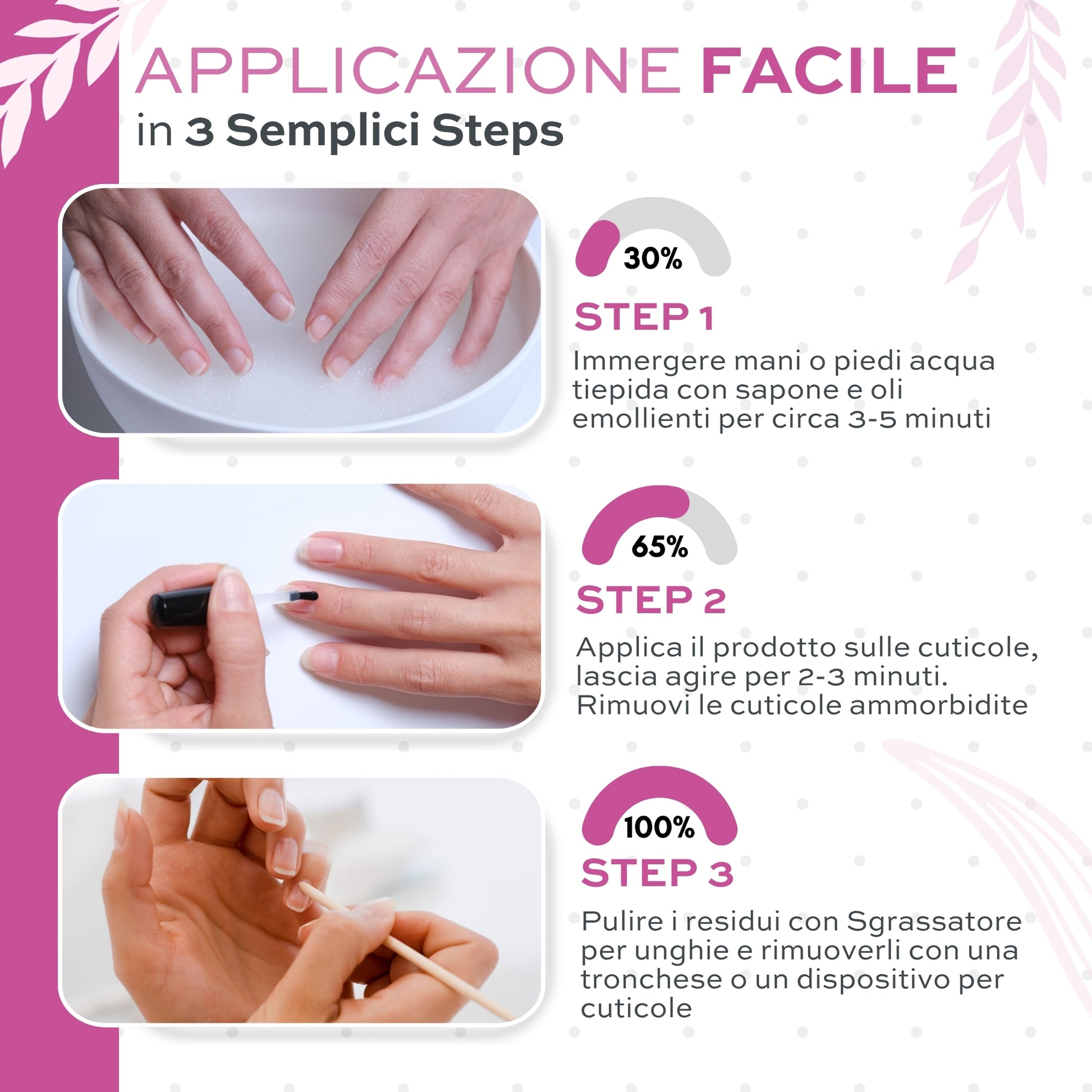 - ✅RISULTATI RAPIDI ED EFFICACI: Applica il trattamento sulle cuticole e attendi solamente pochi minuti per vedere i risultati: cuticole in eccesso morbide e facili da rimuovere, per unghie impeccabili in poco tempo.