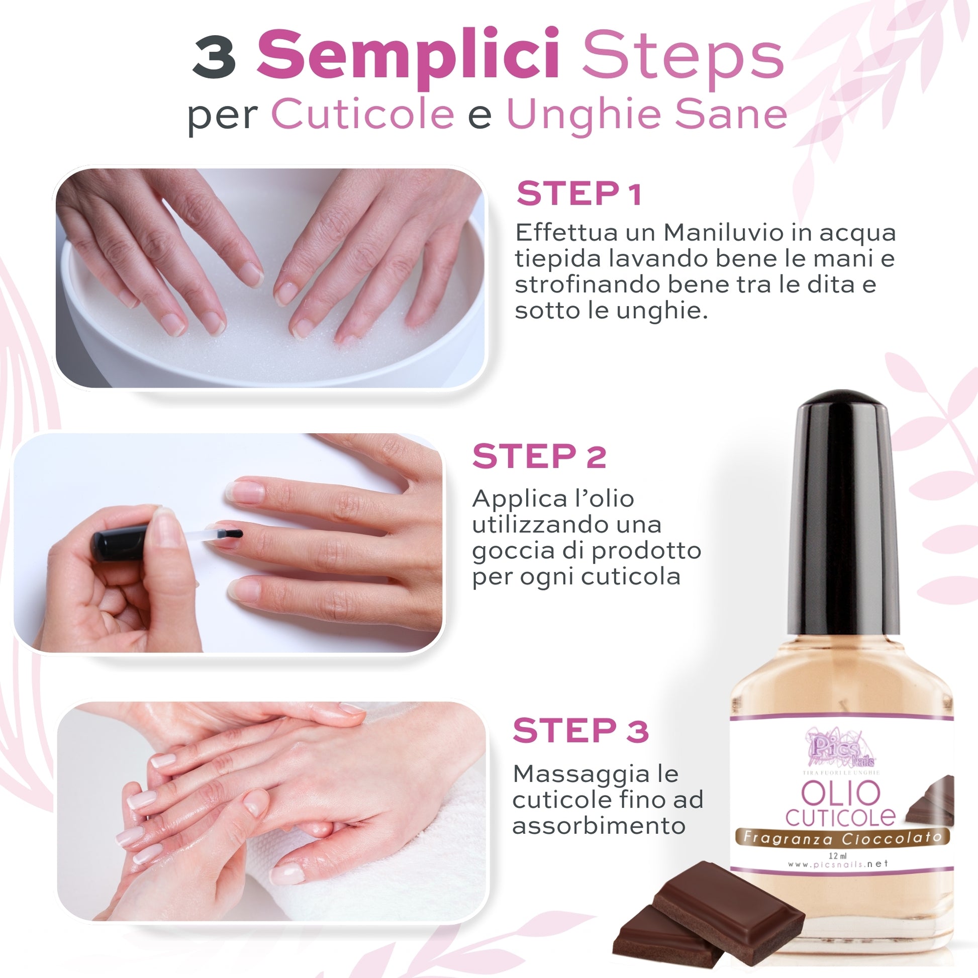 - CONSIGLI D'UTILIZZO: Utilizzare L'olio per Cuticole quotidianamente anche più volte al giorno quando si sente la necessità di idratare il contorno dell'unghia, Applicare il Prodotto sopra le cuticole, massaggiare con movimenti circolari e spingere indietro le pellicine con un bastoncino d'arancio. Durante le fasi della Manicure prima del Maniluvio.