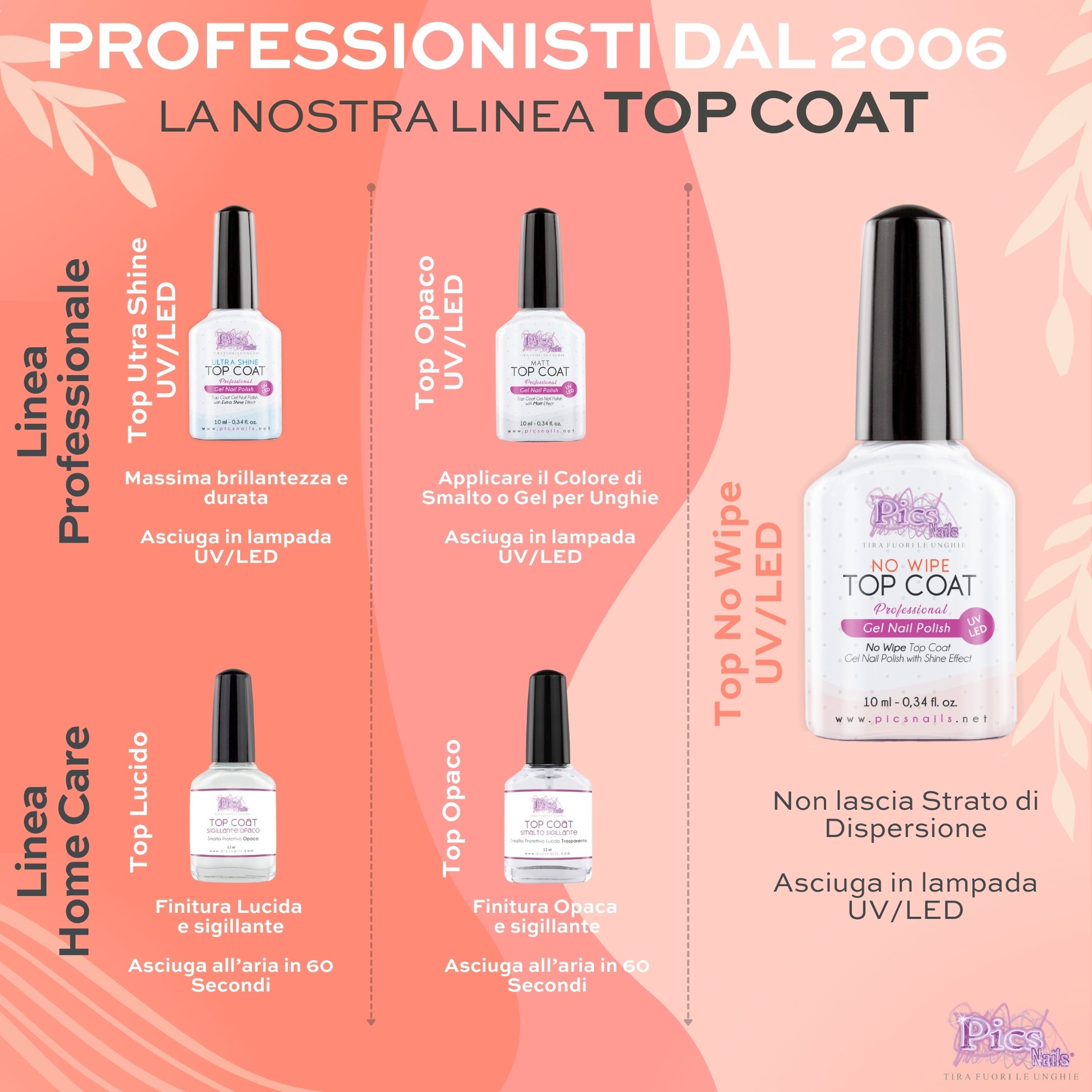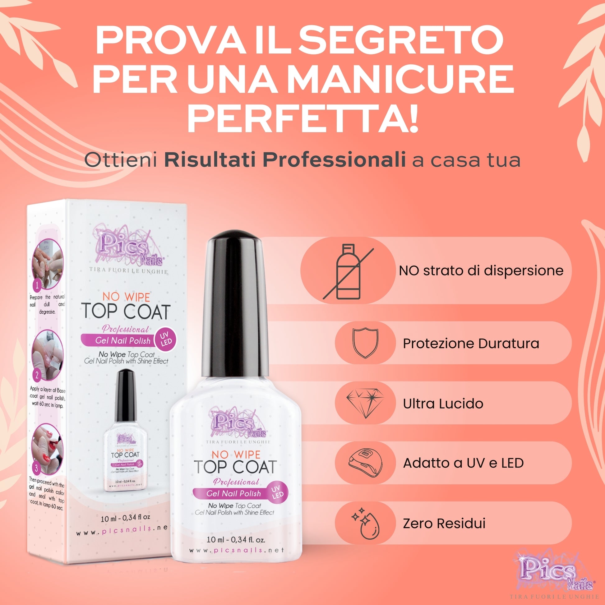 Top Coat Semipermanente NO WIPE UV/LED 10 ml - Smalto Gel Sigillante Senza Strato di Dispersione