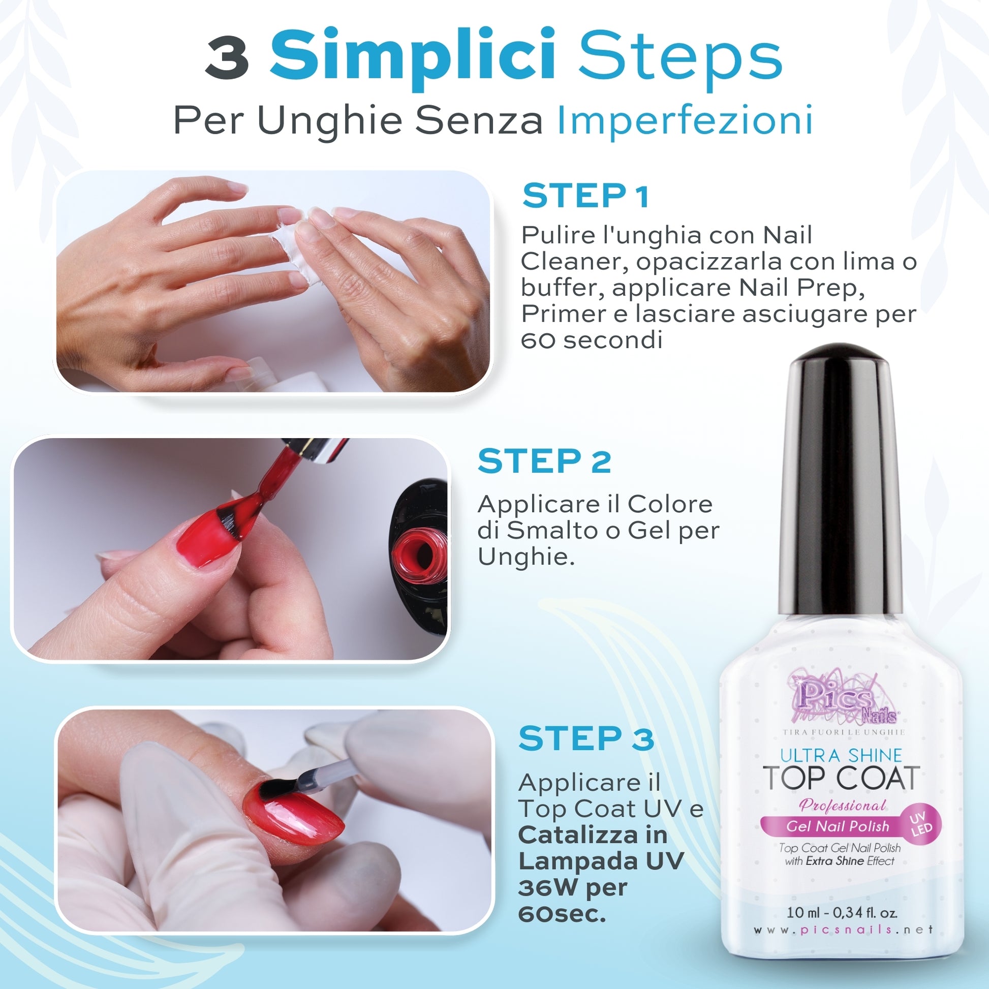 ✅CON QUALI PRODOTTI SI UTILIZZA ? - Il Top Finale Lucidante Pics Nails è ideale con Tantissime tipologie di Prodotti per Unghie o Marche Differenti come Gel Costruttori / Gel Color / Smalti Semipermanenti / Smalto One Step / Acrygel / Acrilico per Unghie e Nail Art.
